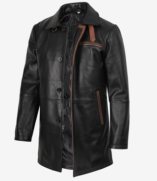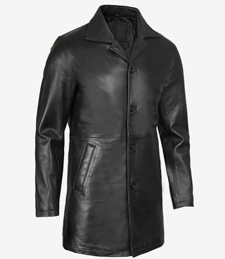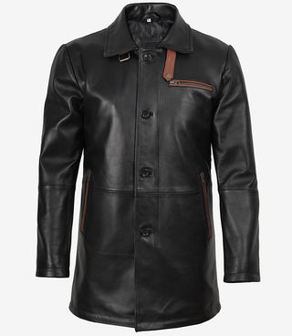 Bristol Men's Real Lambskin Black Leather Car Coat