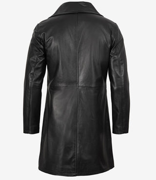 Men's 3/4 Black Real Leather Coat With Fur Collar - Winter Coat