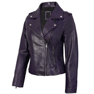 Light Pink Women's Biker Style Cafe Racer Leather Jacket