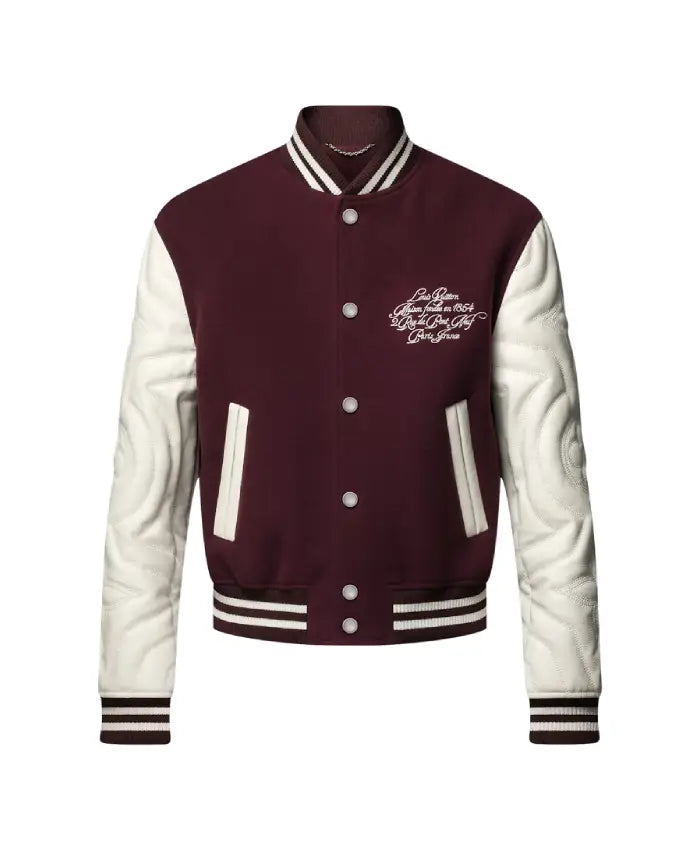Shop Louis Vuitton Embroidered Calfskin Maroon And White Varsity Bomber Jacket