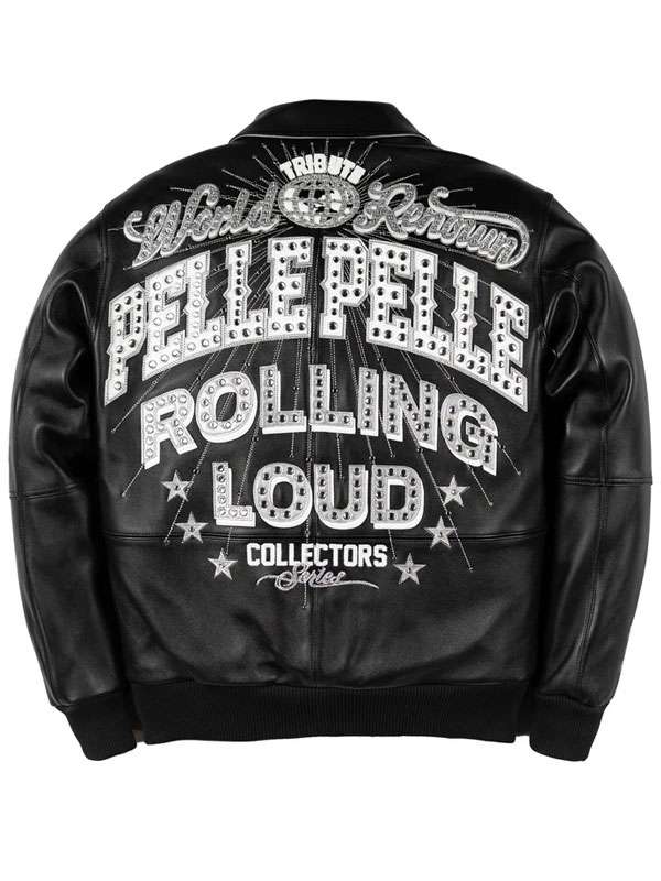 Pelle Pelle Rolling Loud Studded Black Bomber Leather Jacket For Sale