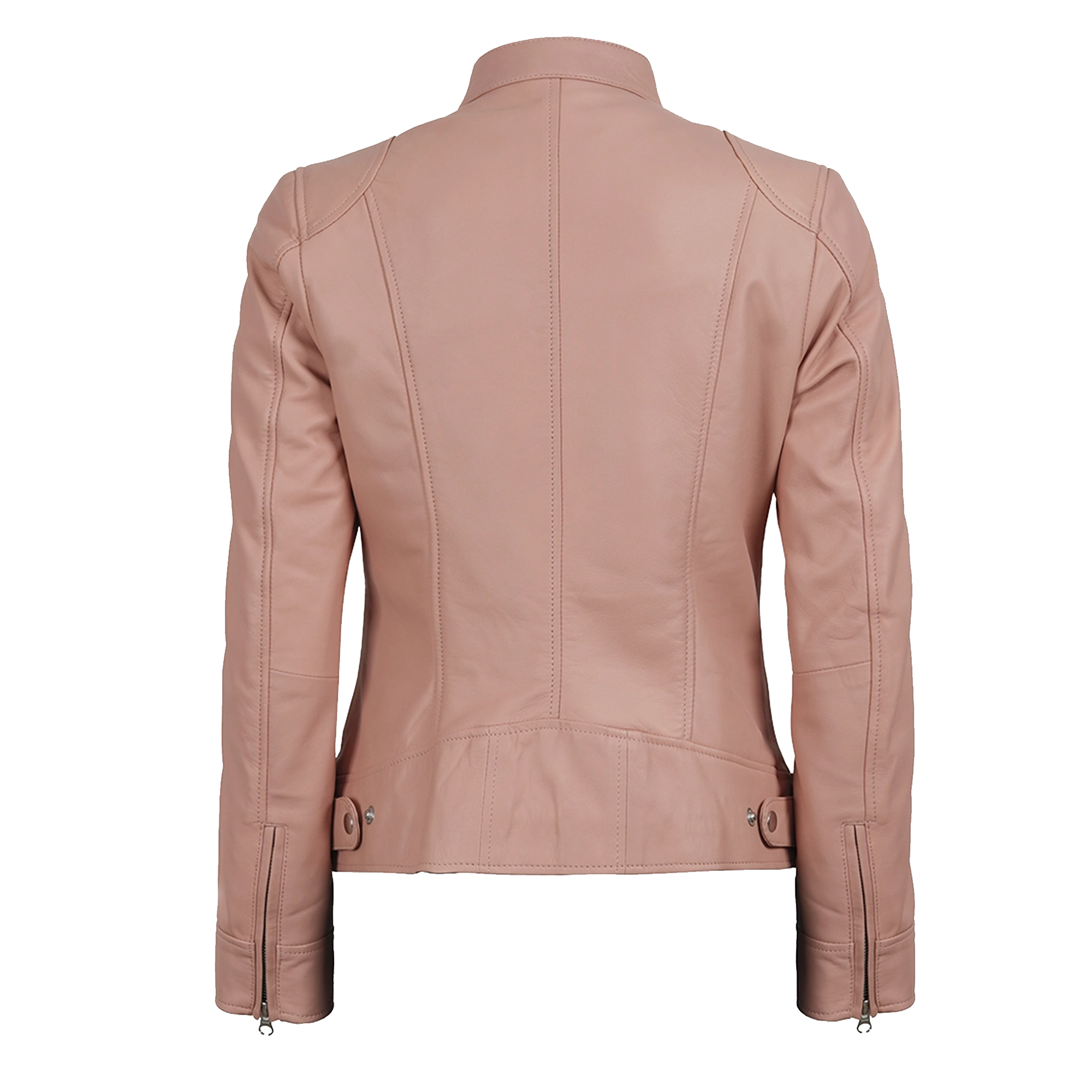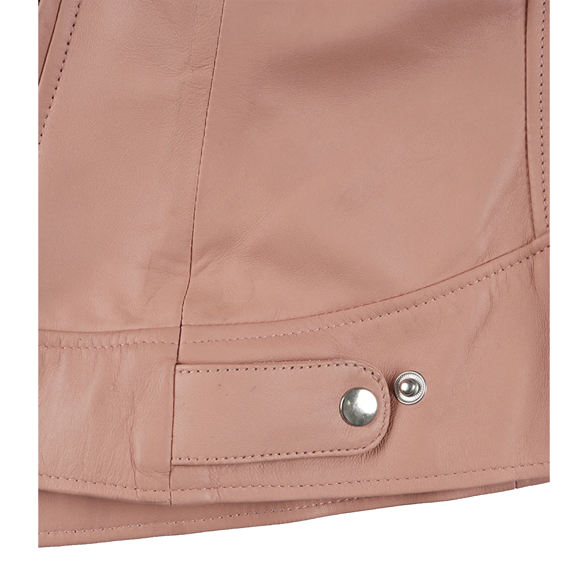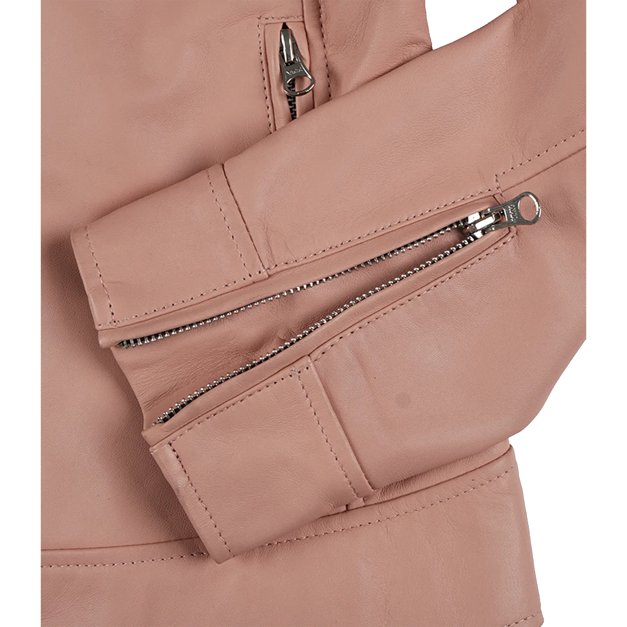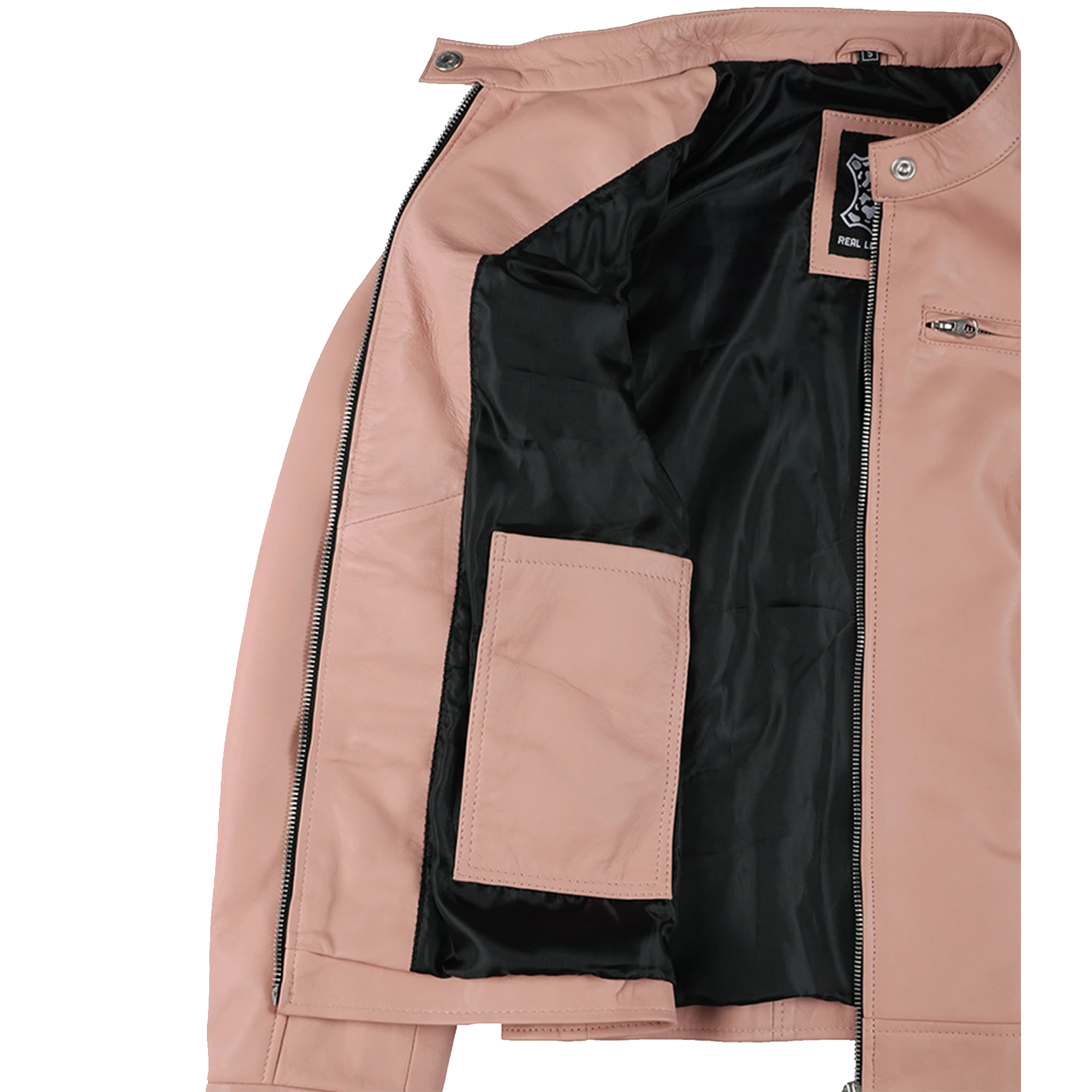 Light Pink Women's Biker Style Cafe Racer Leather Jacket