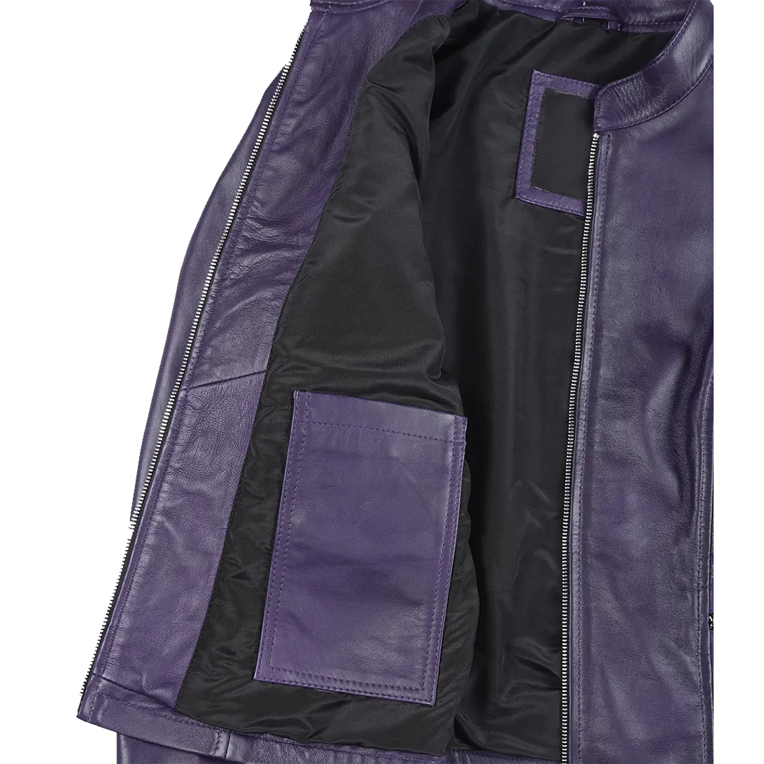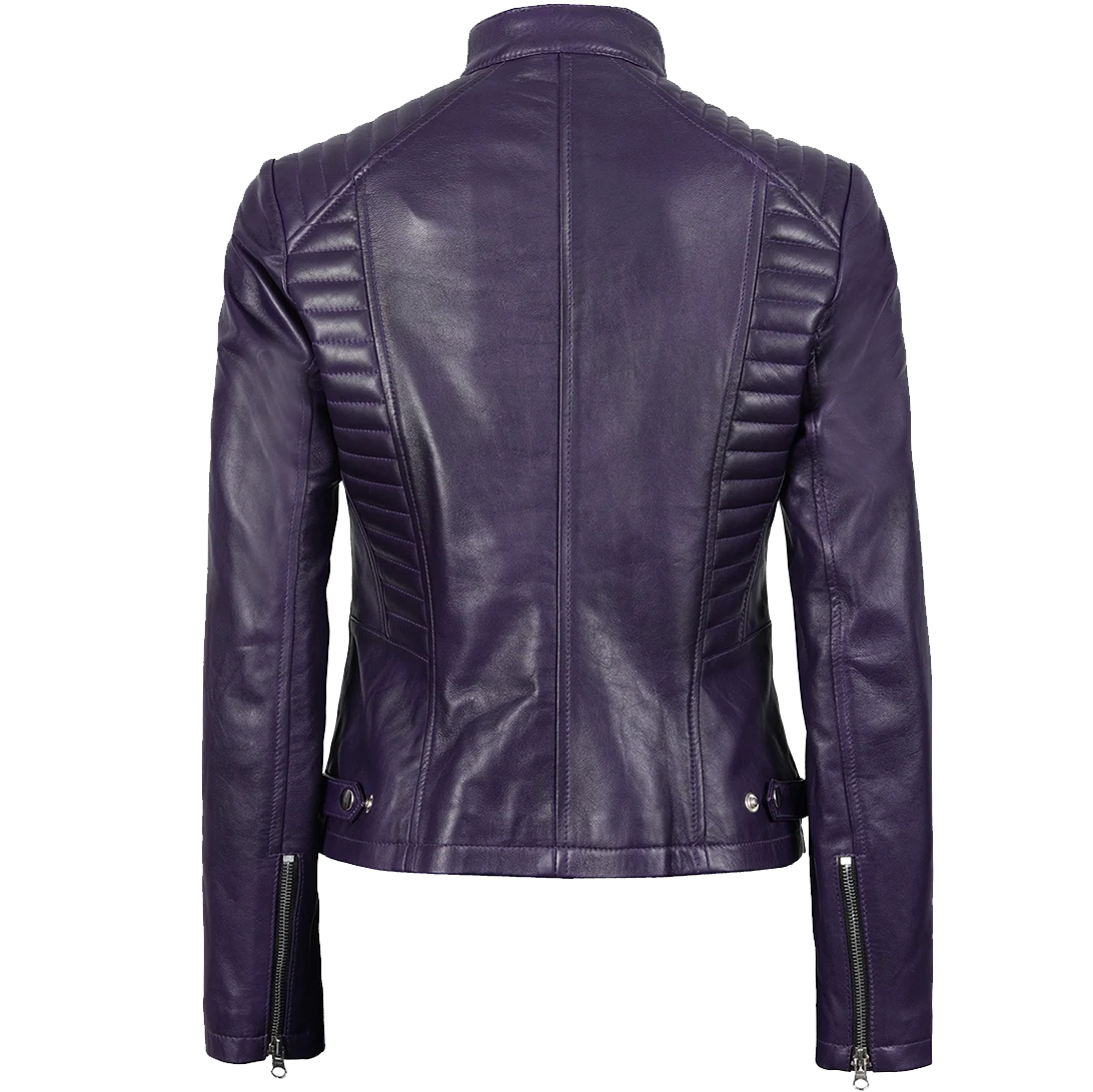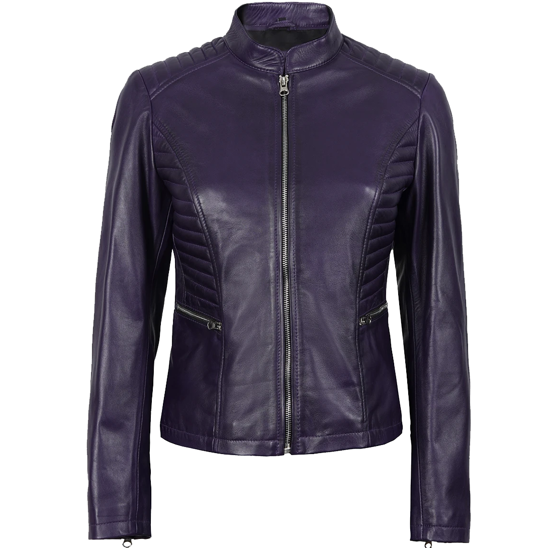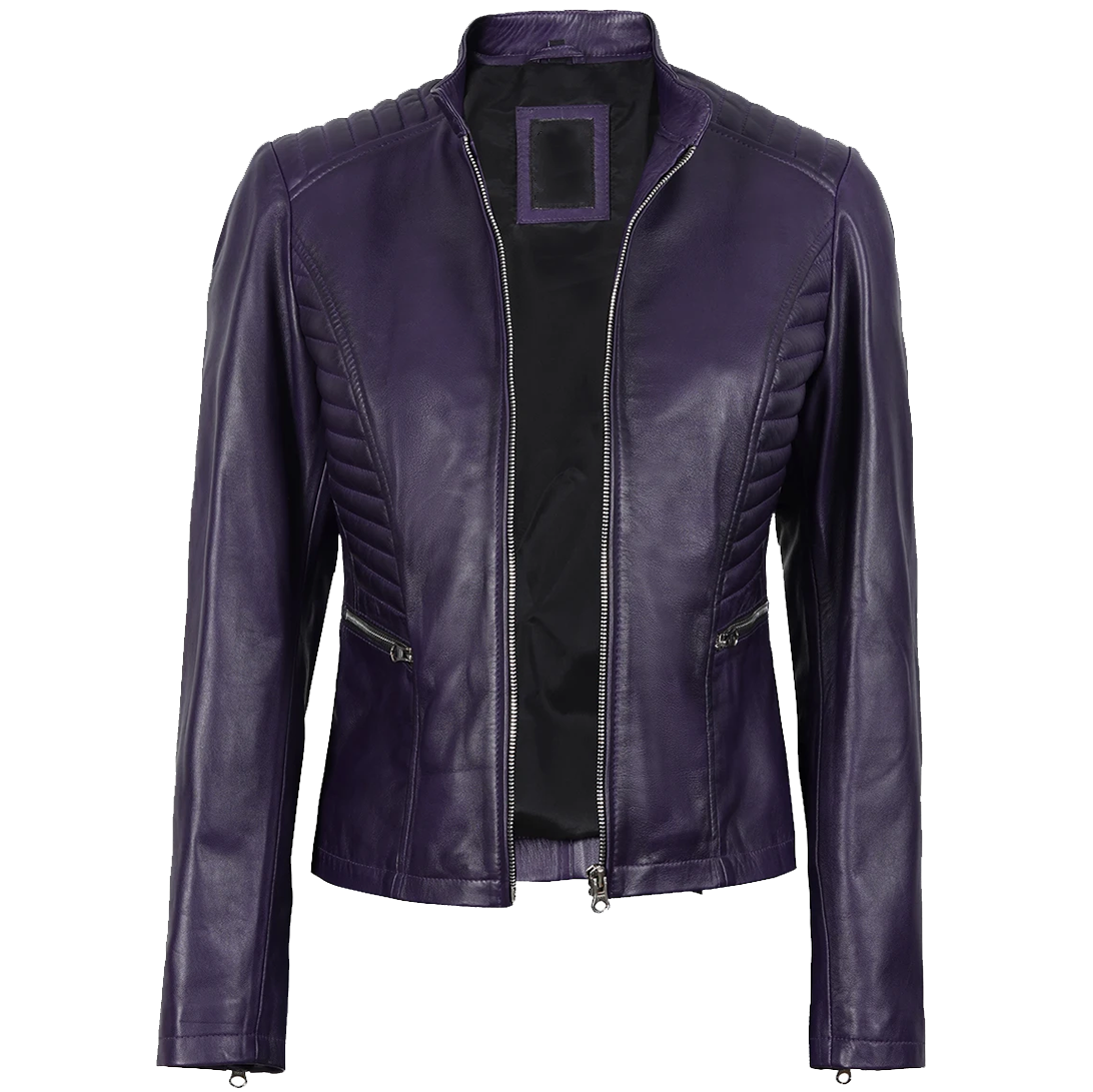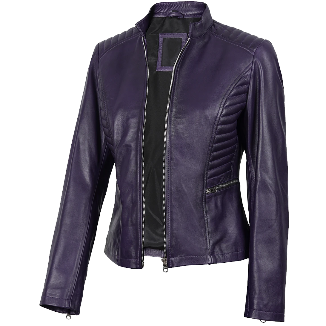 An innovative work of modern fashion that spells elegance, comfort, and endurance is The Rachel Purple Cafe Racer Leather Jacket Women's which certainly blends all those in one line. For durable and stylish women's leather jackets, this one is crafted from 100% authentic lambskin leather and brings in lambskin leather designs for those seeking a head-turning style.