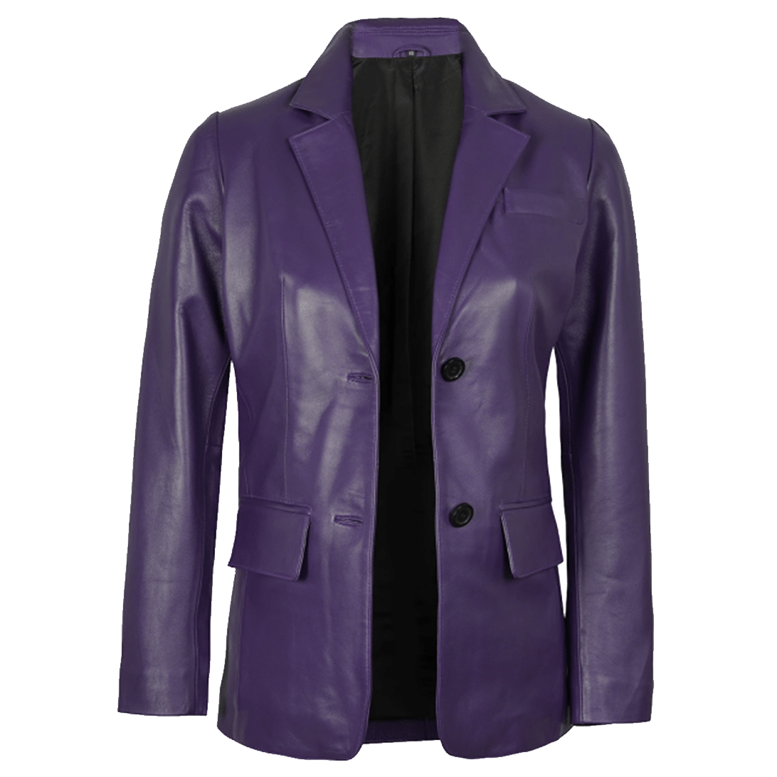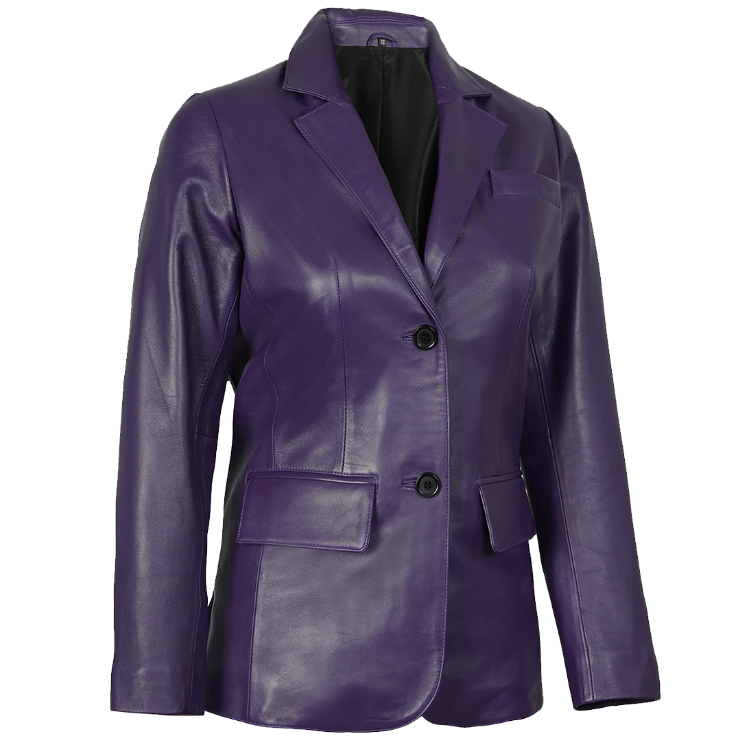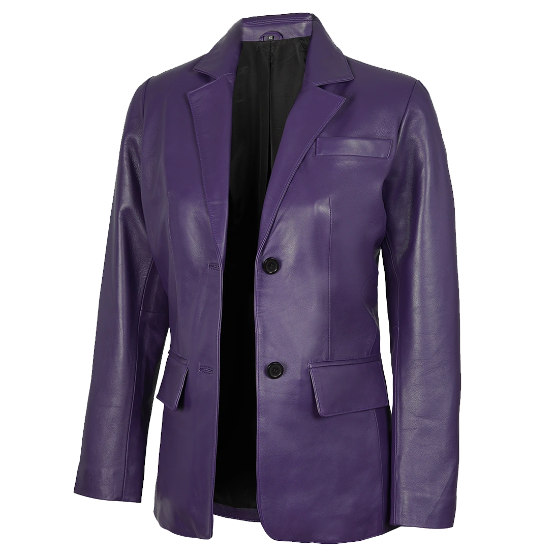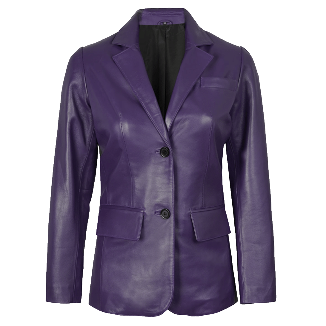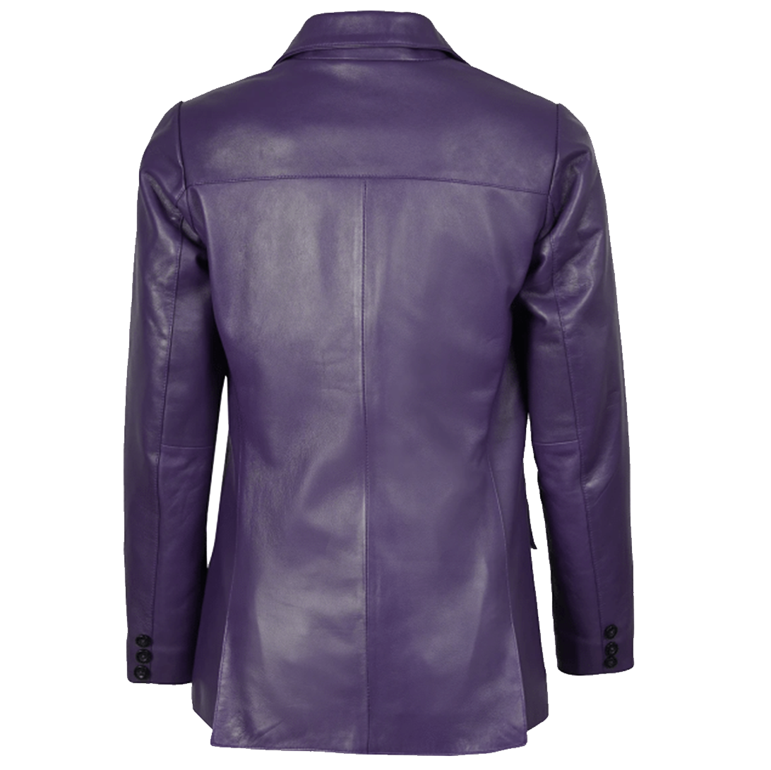 Step into the season with flair in our Women Purple 3/4 Length Leather Car Coat. This mid-length coat, designed with the modern woman in mind, offers both style and function. Its purple hue is both striking and versatile, perfect for elevating any outfit.
