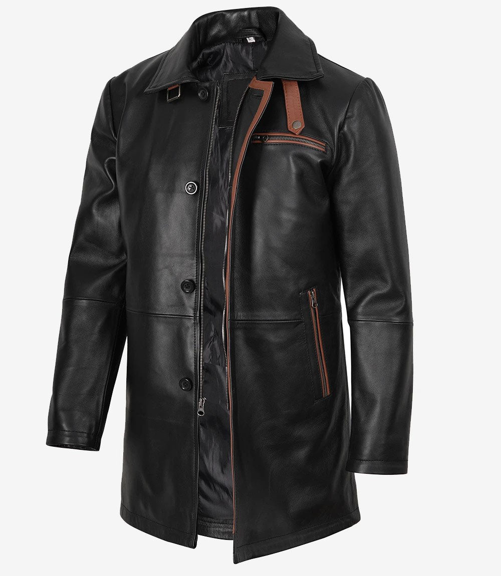 Whether you need a leather car coat men, long leather coat, or men’s leather trench coat, this classic black leather car coat is perfect for any occasion, offering both function and style.