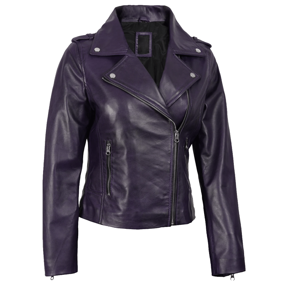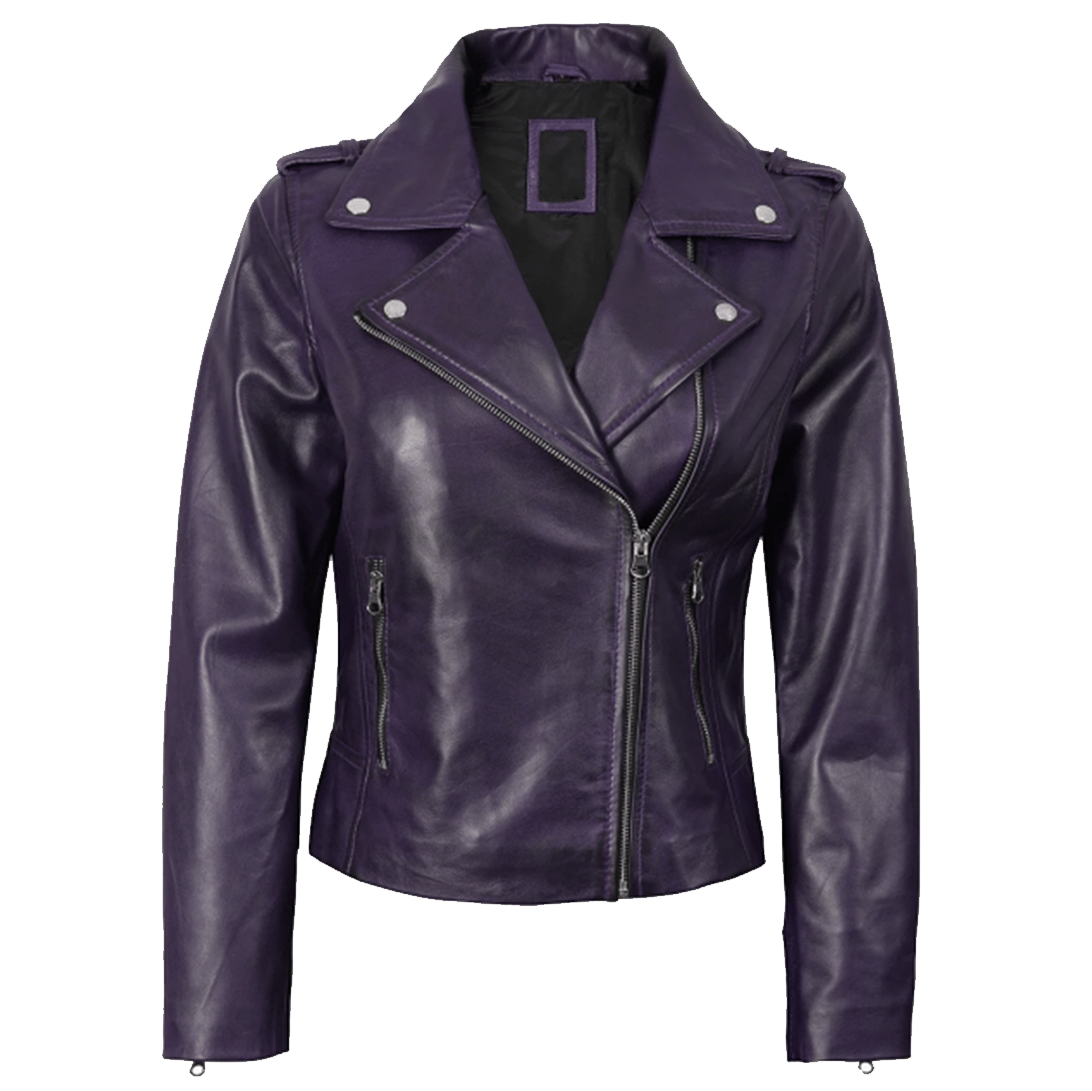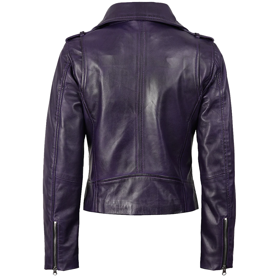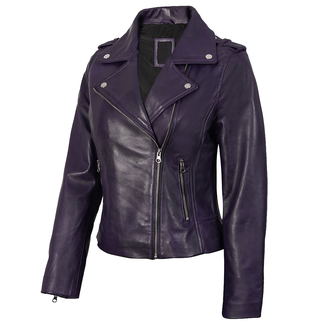 Women’s Purple Asymmetrical Leather Jacket – Real Lambskin