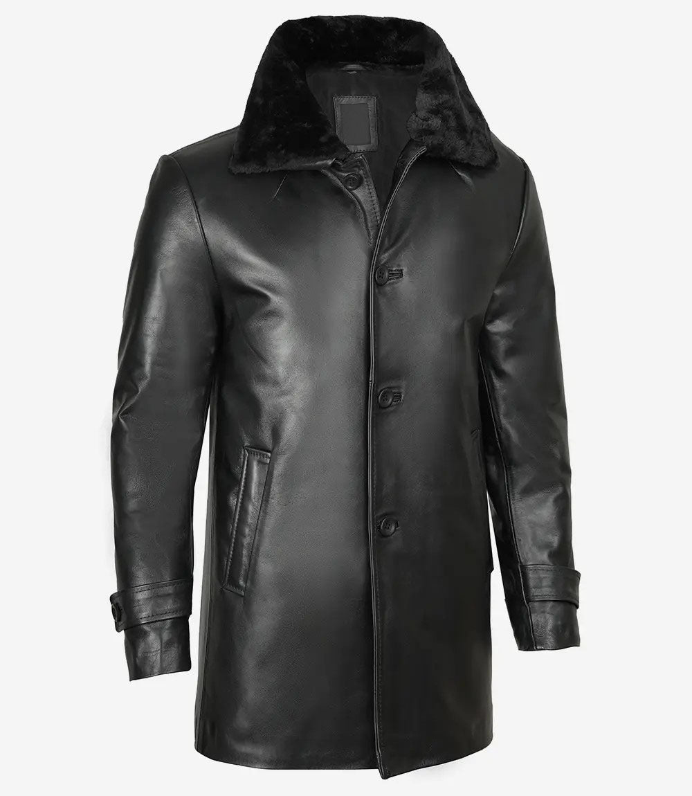 Men’s 3/4 Black Real Leather Coat with Fur Collar – A Luxurious Winter Essential