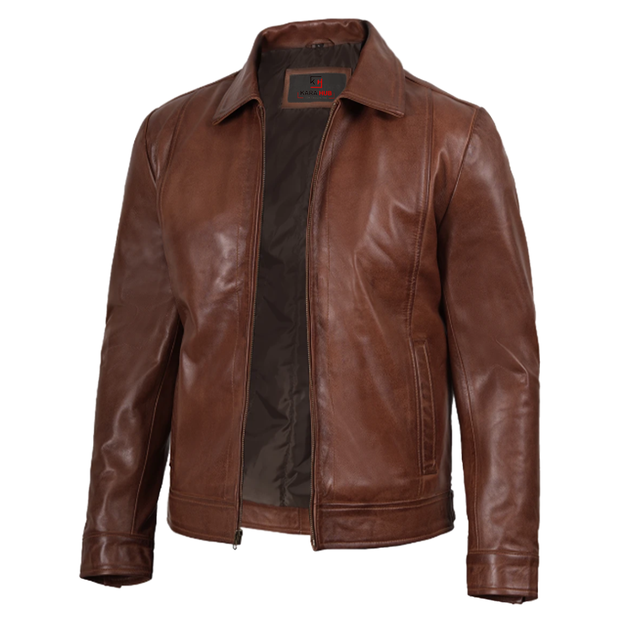 • Elevate your look with our premium men’s cognac lambskin leather jacket, a perfect blend of luxury, comfort, and versatility. Crafted from top-quality 0.8 mm lambskin leather, this jacket boasts a classic shirt-style collar and a regular, tailored fit that enhances your silhouette while allowing room for layering.