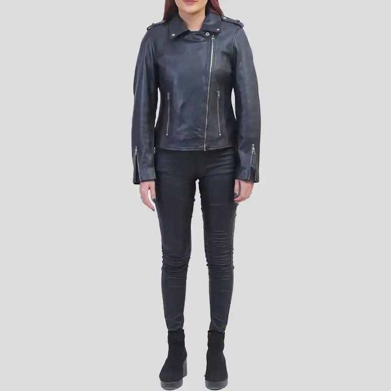 Women’s Asymmetrical Biker Black Leather Jacket