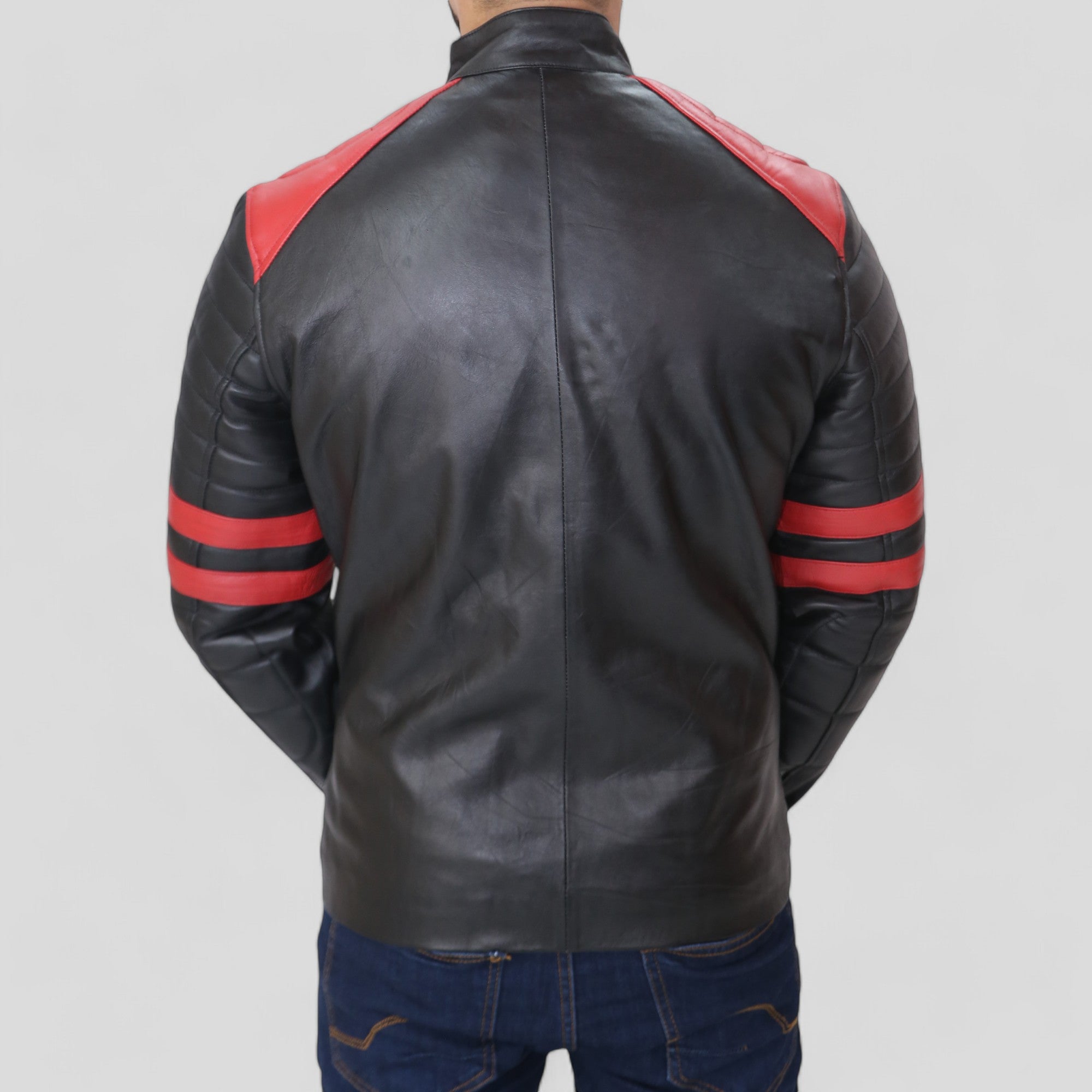 Designed to be lightweight and less bulky than normal jackets, our men’s black cafe racer red strip jacket amalgamates biker swag with dark grunge aesthetic to give you a winter look that leaves you wanting more. Pair our men’s black cafe racer red strip jacket with any t-shirt and denim pants to have a sexy casual look complete.