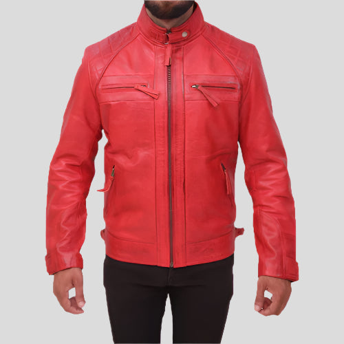 • Distressed Red Sheepskin Leather Jacket For Mens